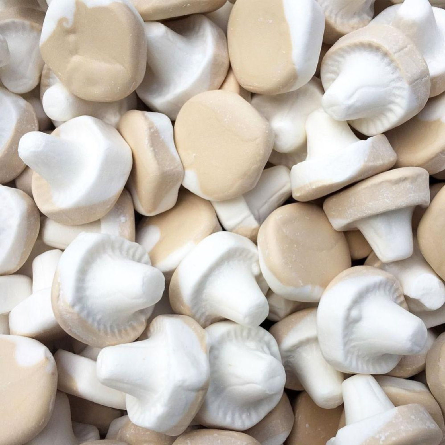 Dals Konfektyr Kolasvamp – ett klassiskt svenskt skumgodis i form av svampar med len och söt karamellsmak. Mjukt, luftigt och fullt av nostalgi – en favorit i godispåsen!