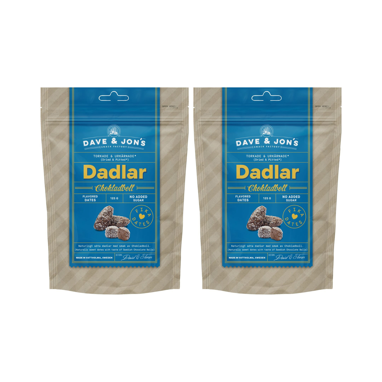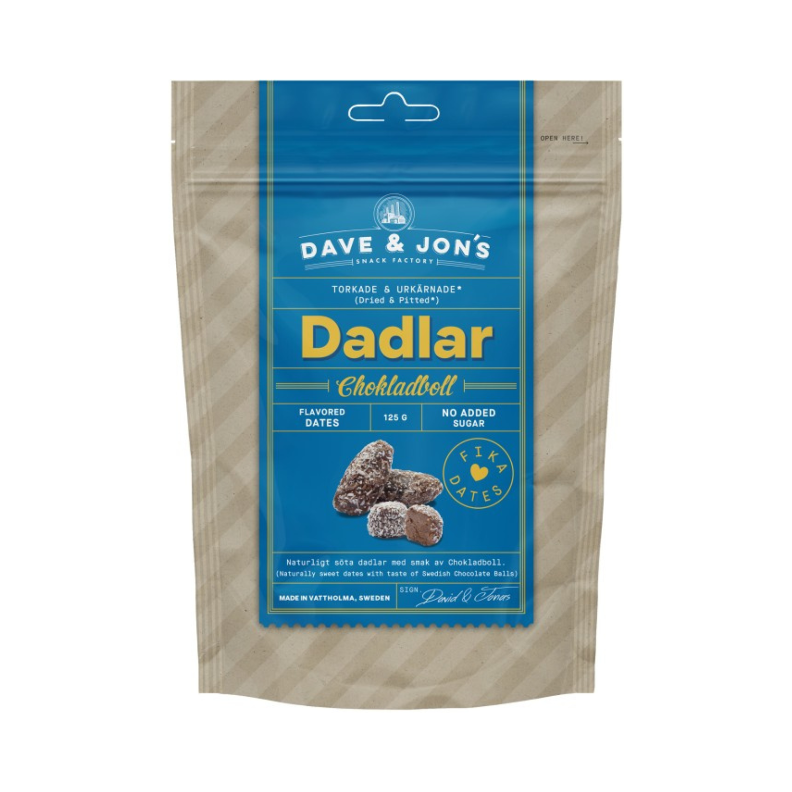 Dave & Jon’s Dadlar Chokladboll – saftiga chokladbollar gjorda på dadlar. Ett naturligt, glutenfritt snacks utan tillsatt socker och med äkta chokladsmak.