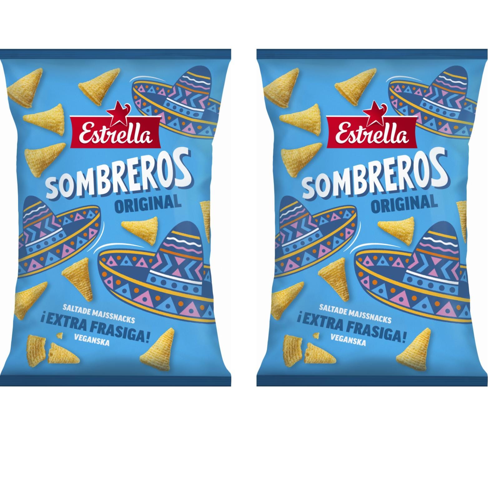 Estrella Sombreros – smakrika majssnacks formade som små sombreros med fyllig ostsmak. Ett glutenfritt snacks med mexikansk twist.