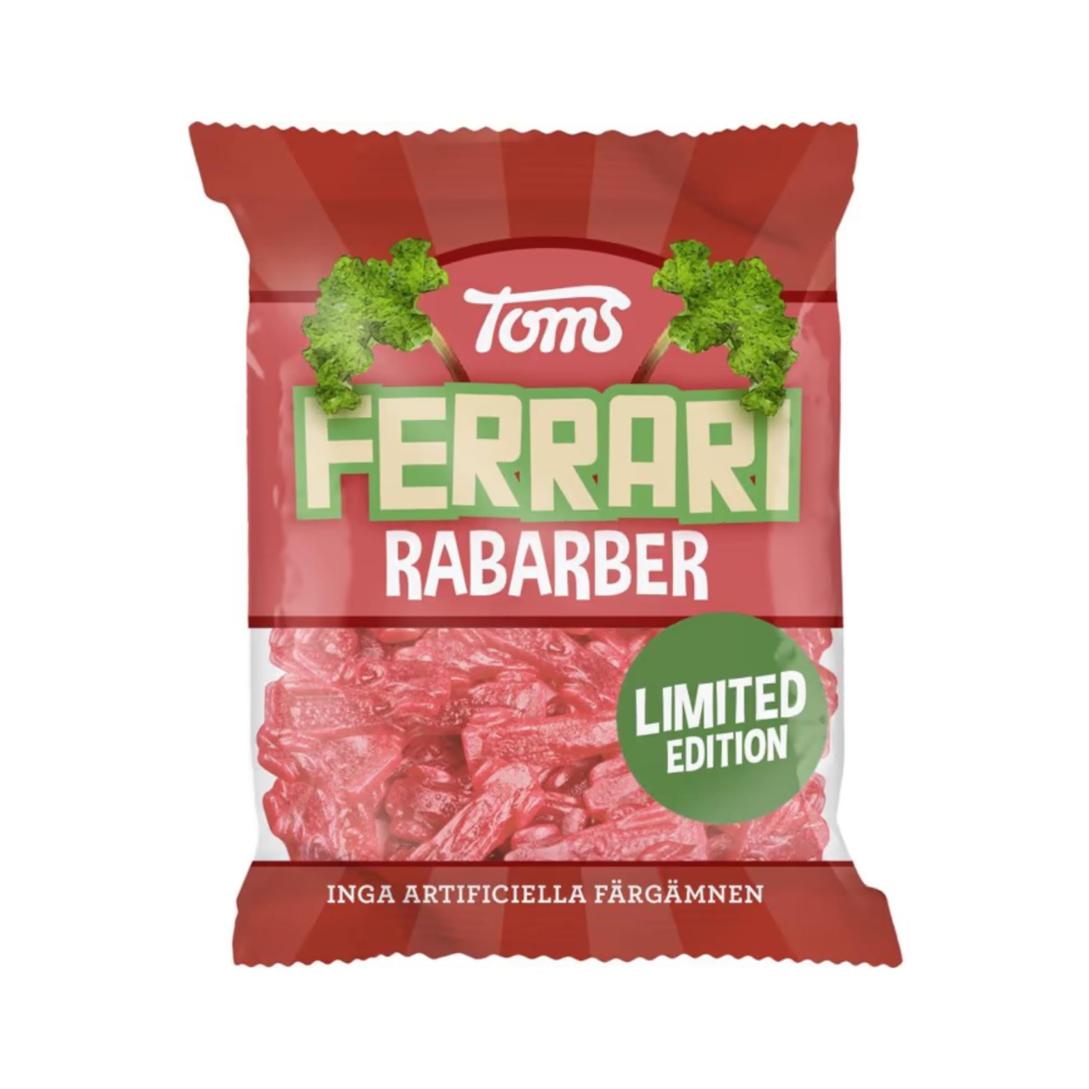 Toms Ferrari Rabarber LTD – segt gelégodis i klassisk Ferrari-form med frisk smak av rabarber. En limiterad upplaga av en svensk godisfavorit, helt gelatinfri.