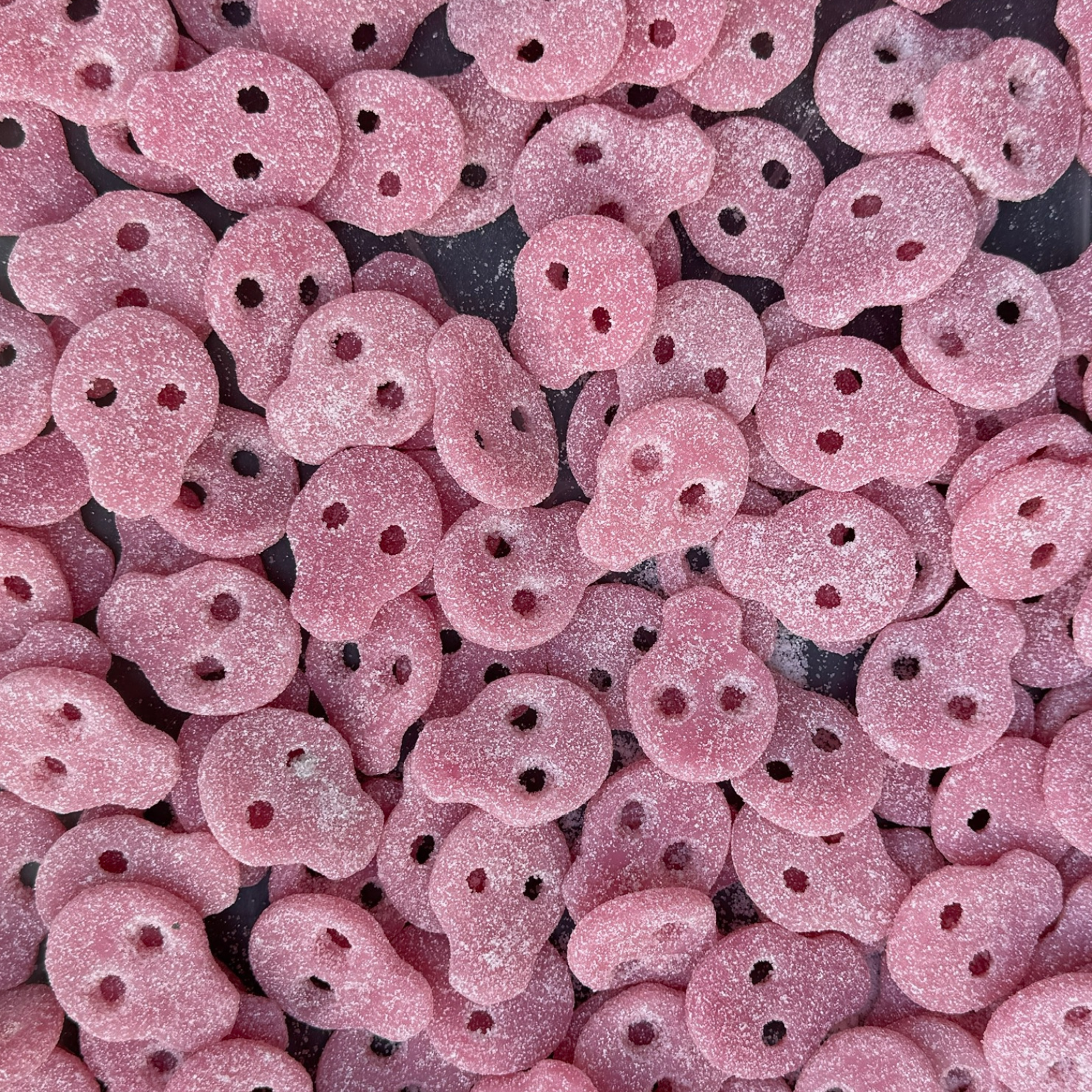 Matthijs Veggie Sur Pinky Skalle – syrligt och fruktigt gelégodis med smak av hallon och bär. Helt veganskt och gelatinfritt samt glutenfritt enligt recept (kan innehålla spår). Ej ekologiskt. Ett färgglatt och populärt surt godis som älskas av många.