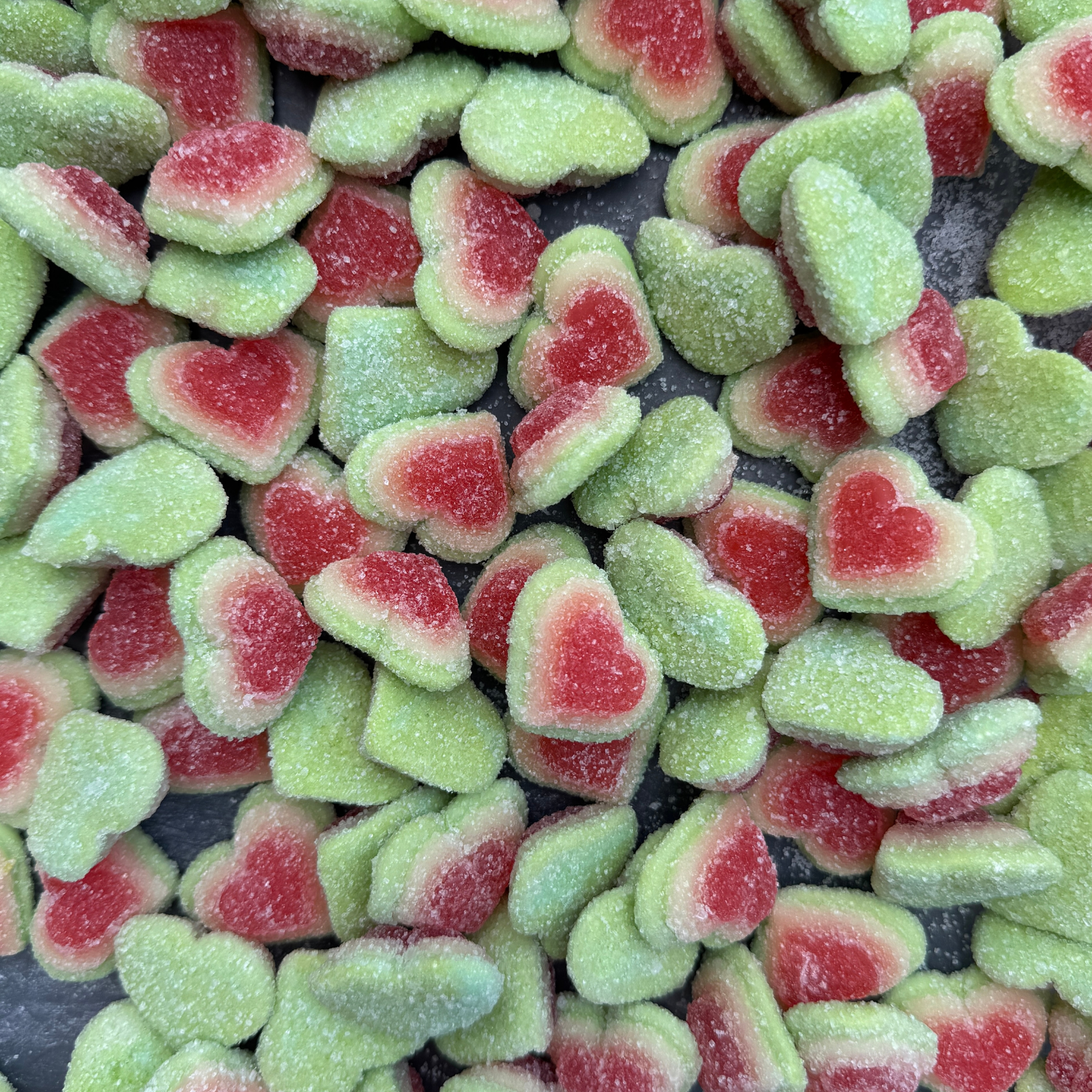 Melonhjärtan från Skåne Konfektyr är oemotståndligt sega hjärtformade godisar med en uppfriskande vattenmelon-smak. Tillverkade i Sverige med en ljus fruktig smak och en mjuk sockeröverdragen konsistens, dessa bedårande godisar är lika roliga att titta på som de är att äta.
