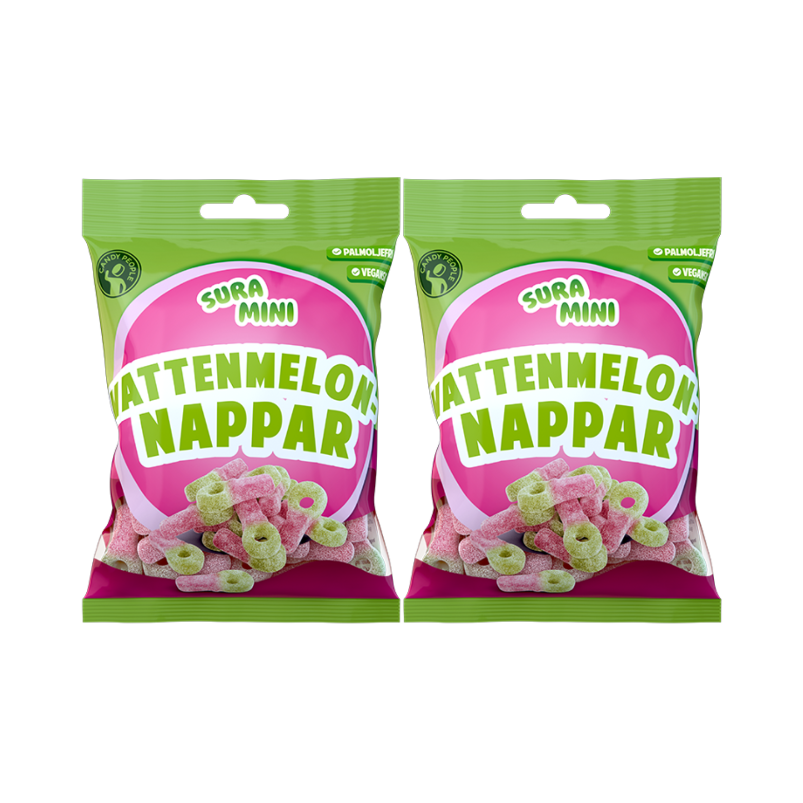 är fruktiga, sega flaskformade gummibjörnar sprängfyllda med sötsur vattenmelonsmakning. Täckta med syrliga sockerkristaller erbjuder de den perfekta balansen mellan uppfriskande fruktighet och bubbelig syrlighet. 100 % veganska, dessa färgglada godsaker är gelatinfria.
