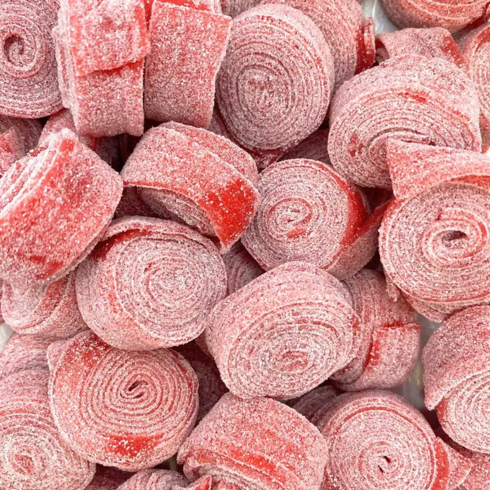 Vidal Jordgubbsrullar – segt och fruktigt godis med smak av jordgubb. Glutenfritt och halal-certifierat spanskt godis i rolig rullform.